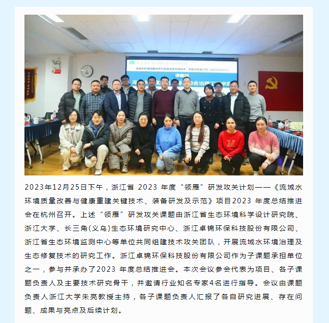 浙江省 2023 年度“領(lǐng)雁”研發(fā)攻關(guān)計劃——《流域水環(huán)境質(zhì)量改善與健康重建關(guān)鍵技術(shù)、裝備研發(fā)及示范》項目年度總結(jié)推進(jìn)會順利召開