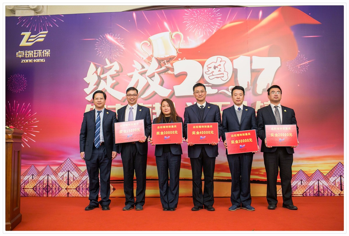 年會(huì)的最后由浙江卓錦環(huán)??萍脊煞萦邢薰径麻L(zhǎng)卓未龍先生對(duì)2016年取得的各項(xiàng)成績(jī)進(jìn)行盤(pán)點(diǎn),肯定了全體員工的共同努力。卓總指出,2016年是卓錦環(huán)保制定大戰(zhàn)略、大發(fā)展“三年規(guī)劃”的開(kāi)局之年,也是挑戰(zhàn)與機(jī)遇并存的一年,在公司董事會(huì)和管理團(tuán)隊(duì)的領(lǐng)導(dǎo)下牢牢把握了穩(wěn)重求進(jìn)的工作總基調(diào),合力奮進(jìn),兢兢業(yè)業(yè),簽約合同項(xiàng)目金額再創(chuàng)歷史新高,圓滿(mǎn)完成了既定目標(biāo), 順利實(shí)現(xiàn)了公司三年規(guī)劃的開(kāi)門(mén)紅。同時(shí),卓總還明確了公司2017年經(jīng)營(yíng)的總體規(guī)劃和目標(biāo)。全體員工同心協(xié)力,再接再勵(lì),圓滿(mǎn)完成公司2017年各項(xiàng)公司目標(biāo)。