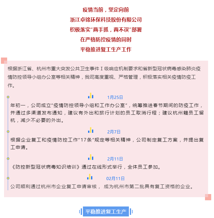 “兩手抓,兩不誤”,卓錦環(huán)保平穩(wěn)推進復(fù)工生產(chǎn)
