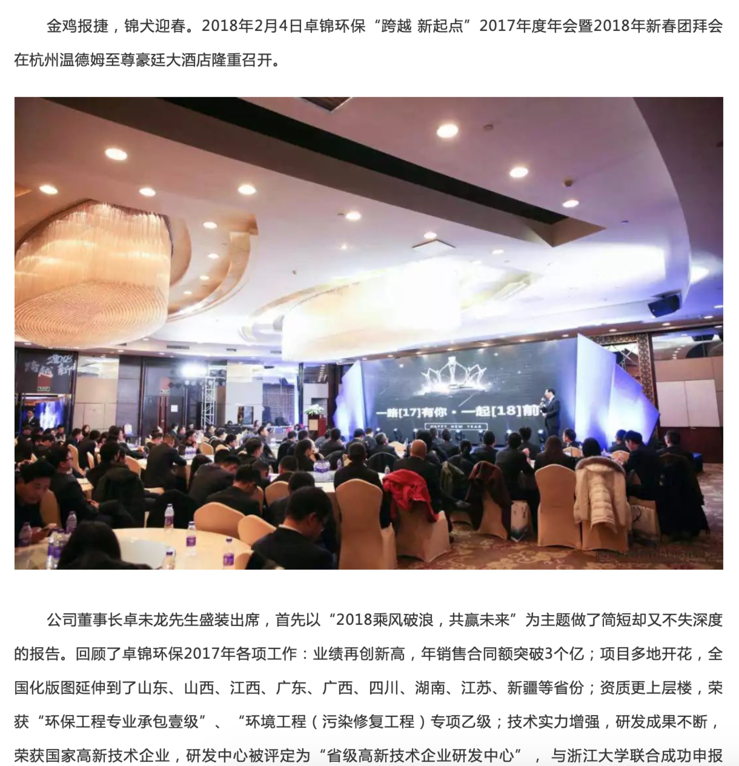 卓錦環(huán)保“跨越 新起點”2017年度年會暨2018年新春團(tuán)拜會”盛況新鮮出爐