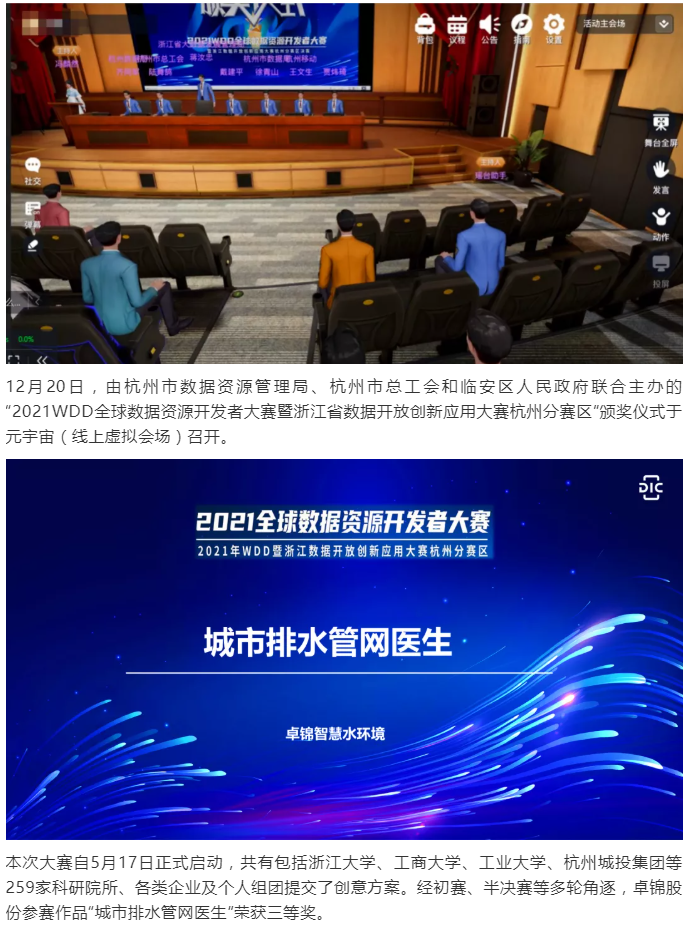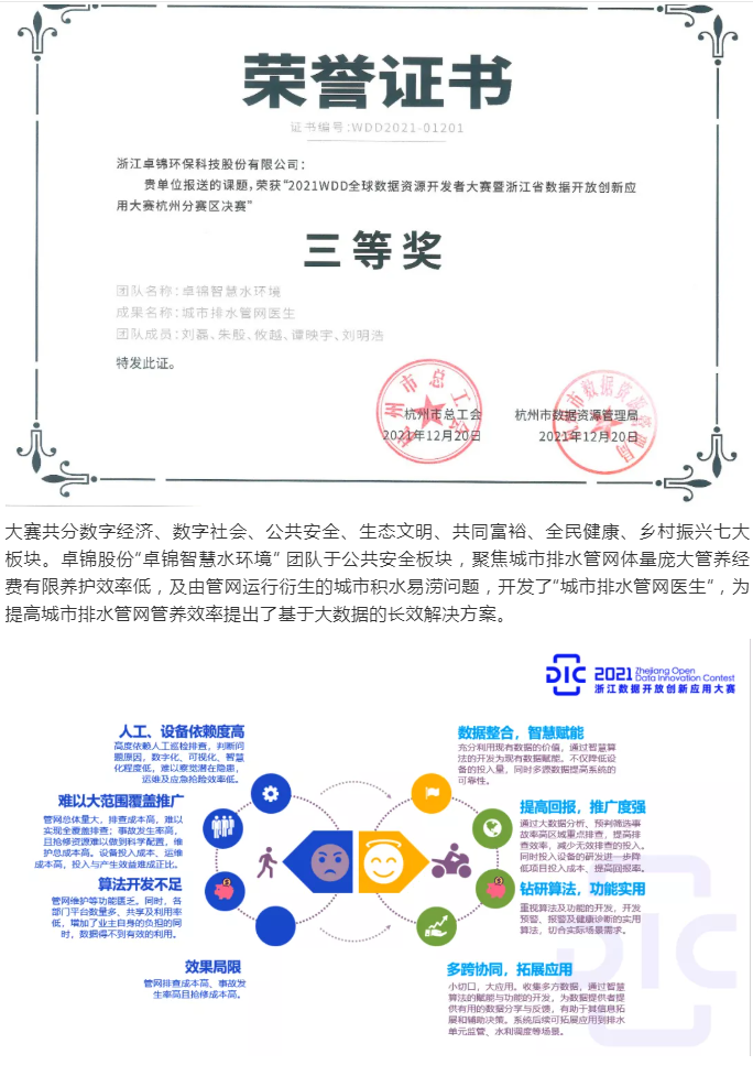 卓錦股份榮獲“2021WDD全球數據資源開發(fā)者大賽暨浙江省數據開放創(chuàng)新應用大賽杭州分賽區(qū)”三等獎